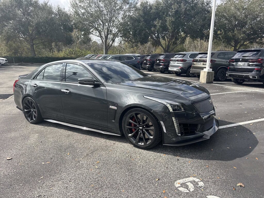 LUXURY PACKAGE includes (CJ4) tri-zone automatic climate control, (AM9) rear split-folding seat with armrest, (KA6) heated rear seats, (DB3) rear window power sunshade, (DE8) rear side window manual sunshades, (KI6) 110V power receptacle and (DRZ) Rear Camera Mirror, SUNROOF, ULTRAVIEW, POWER, WHEELS, 19 X 9.5 (45.7 CM X 24.1 CM) FRONT, 19 X 10 (45.7 CM X 25.4 CM) REAR, AFTER MIDNIGHT PREMIUM PAINTED FINISH ALLOY, ADVANCED SECURITY PACKAGE includes (UTR) additional shielded theft-deterrent alarm system, (UTU) inclination tilt sensor, (ULS) steering column lock, (PB4) locking wheel lugs and (AKI) laminated glass rear door windows, CADILLAC USER EXPERIENCE WITH EMBEDDED NAVIGATION AM/FM stereo with connected navigation providing real-time traffic, 8 diagonal color information display, two USB ports, personalized profiles for each drivers settings, Natural Voice Recognition, Phone Integration for Apple CarPlay® and Android Auto® capability for compatible phone, Collection and Teen Driver (STD), ENGINE, 6.2L (376 CI) SUPERCHARGED V8 DI VARIABLE VALVE TIMING (VVT) ALUMINUM with Active Fuel Management (640 hp [477.2 kW] @ 6400 rpm, 630 lb-ft of torque [854.2 N-m] @ 3600 rpm) (STD), TRANSMISSION, 8-SPEED AUTOMATIC (STD). Cadillac V-Series with Phantom Gray Metallic exterior and Jet Black w/Jet Black accents interior features a 8 Cylinder Engine with 640 HP at 6400 RPM*.